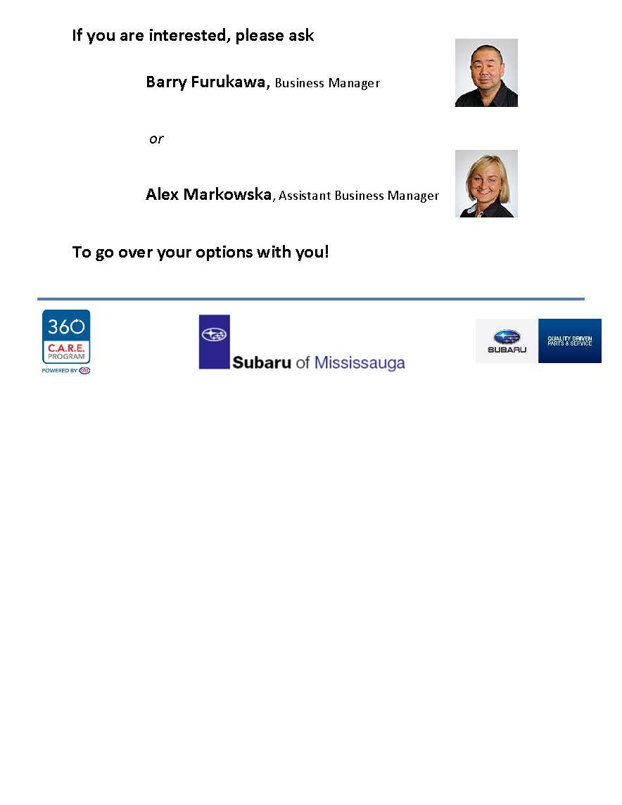 Yes! I would like to sign up to receive emails or other types of commercial electronic messages on the latest product announcements, promotions, service specials and more from Subaru of Mississauga. These messages may be delivered through various digital channels, including social medias, and may be tailored to my interests and preferences. You may withdraw your consent at any time by clicking the unsubscribe link contained within all of our commercial electronic messages or by updating your preferences with us.